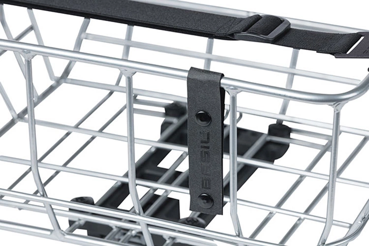 - Le panier frontal Basil Portland est équipé d’une sangle de fixation réglable