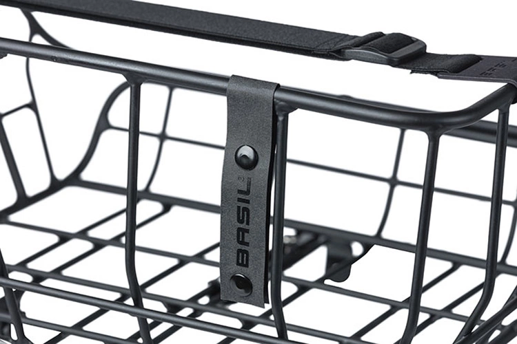 - Le panier frontal Basil Portland est équipé d’une sangle de fixation réglable