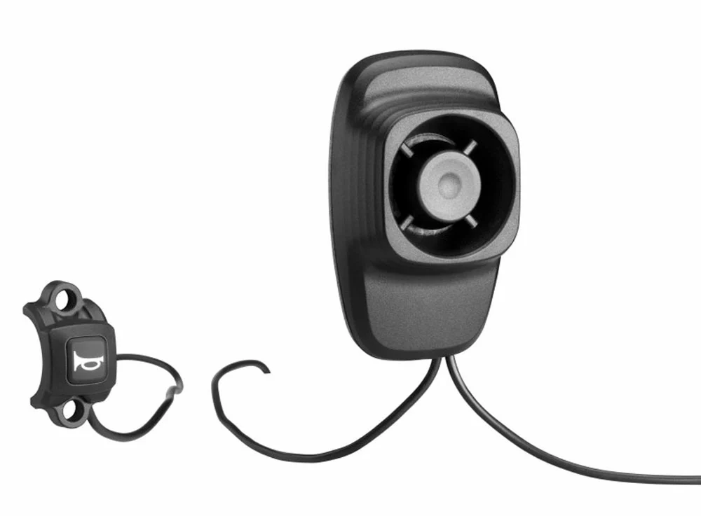 - 1 x klaxon Busch + Müller pour S-Pedelecs – montage tube diagonal (bouton-poussoir et câblage inclus)