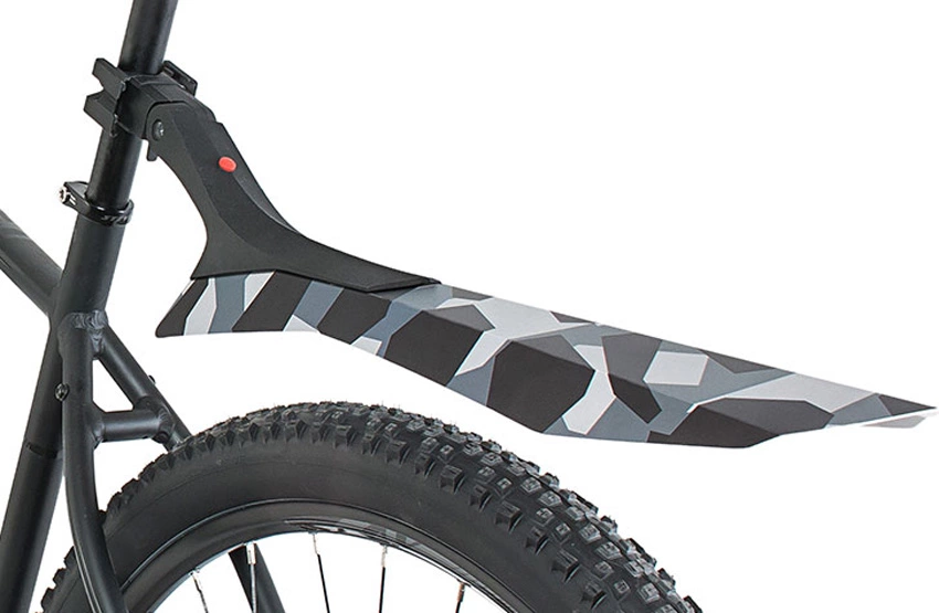 La fixation du garde-boue par clip se visse discrètement sur la tige de selle à l’aide de quatre vis et assure un maintien solide. La fonction de fixation rapide du support vous permet de démonter rapidement le support et le garde-boue. Les films sont fixés et retirés à l’aide d’une fixation intelligente située sous le garde-boue.