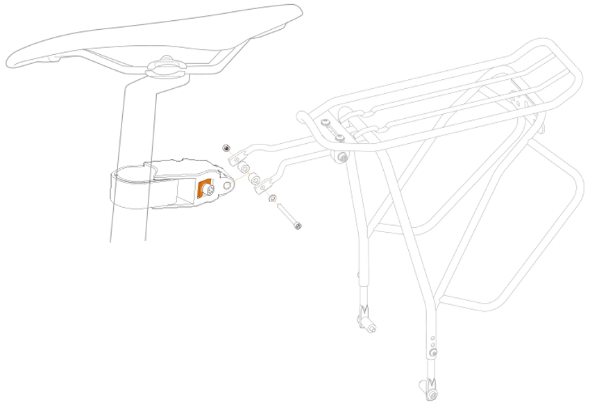 L’adaptateur de porte-bagages Ibera IB-Q7 permet de monter sur la tige de selle des porte-bagages sans bras de fixation suffisamment long.