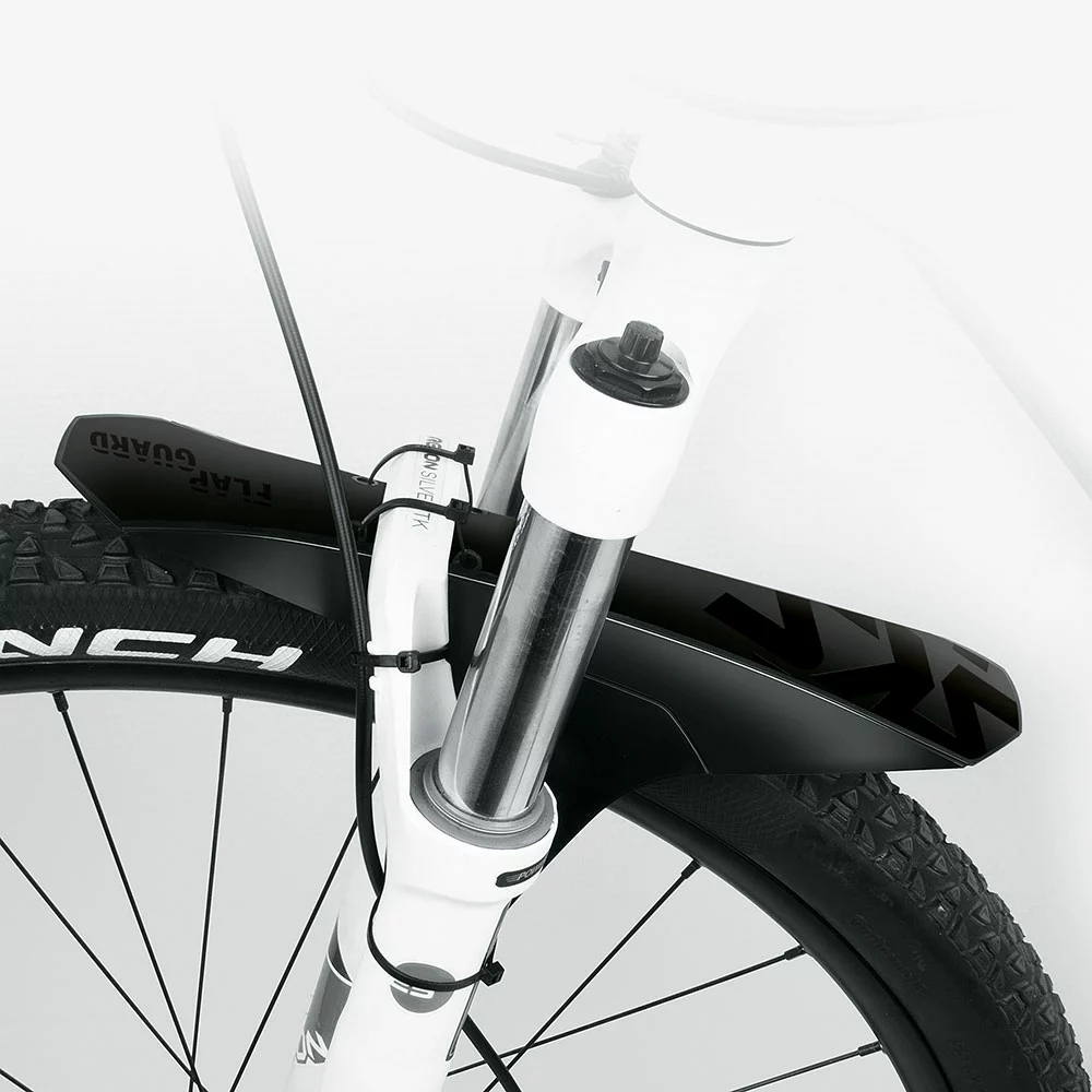 Pas seulement pour les coureurs : ce Flap Guard discret et super léger (45g) protège ton visage de la boue et des éclaboussures. Produit dans un matériau super souple, il convient aux vélos 26″, 27,5″ et 29″ ainsi qu’à presque toutes les fourches. Le SKS Germany Flap Guard se fixe facilement sur le té de fourche ainsi que sur le tube plongeur directement à proximité du pneu à l’aide des attaches de câble fournies.