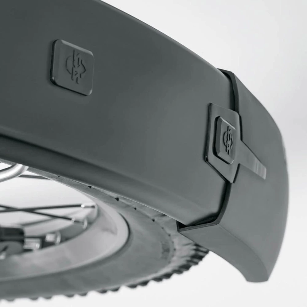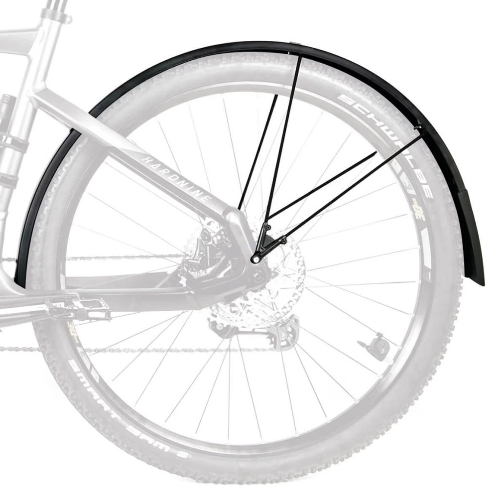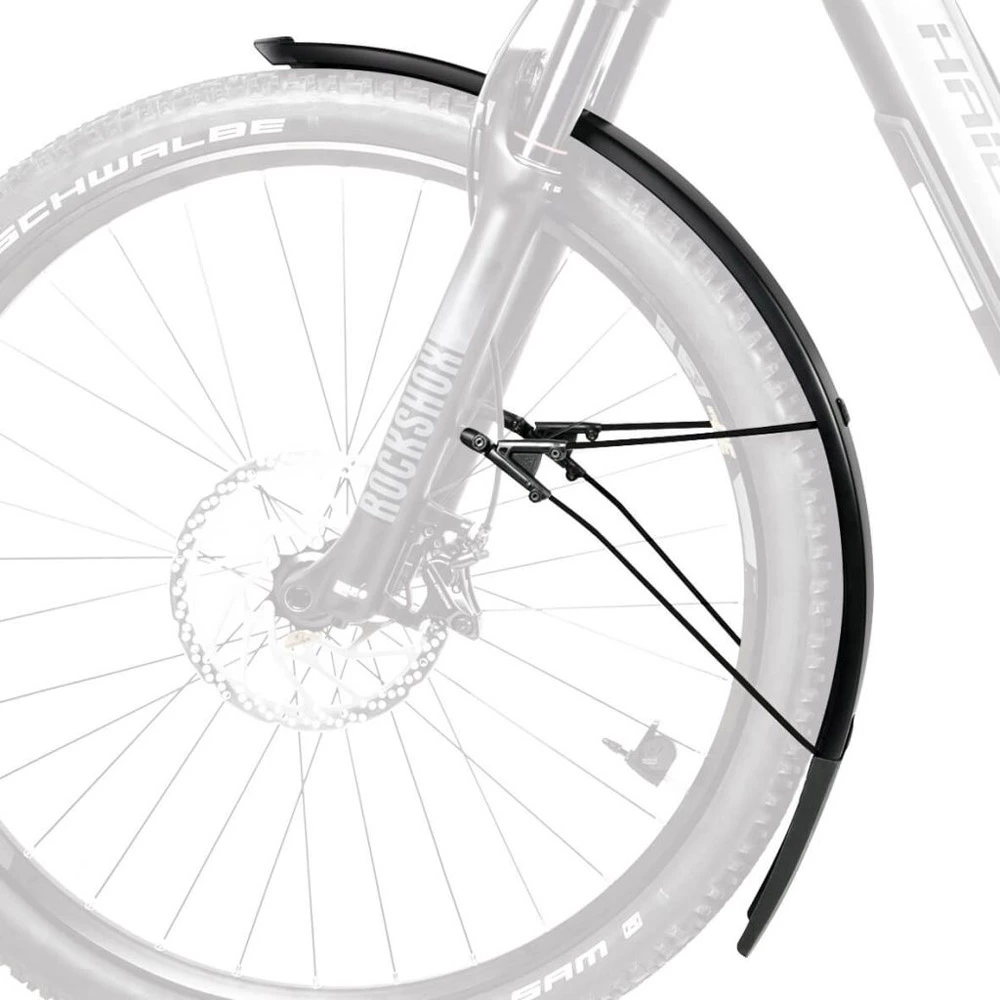 Grâce à la construction en sandwich flexible du jeu de garde-boue Bluemels Style 28″, dans laquelle des bandes d’aluminium très fines ont été intégrées dans un revêtement en plastique noir mat, les garde-boue SKS sont extrêmement robustes, résistants à la flexion et protégés contre la corrosion. Le nouvel adaptateur en V avec système de sécurité ESC assure le découplage des doubles barres en U, de sorte que la roue ne se bloque pas si, par exemple, des branches se glissent entre les rayons.