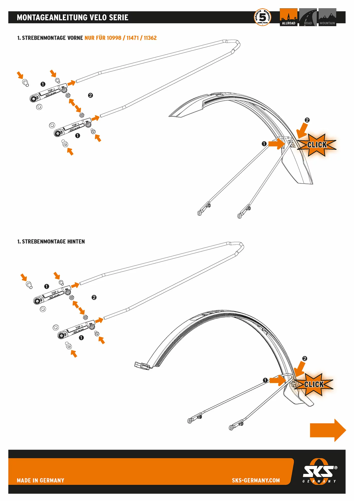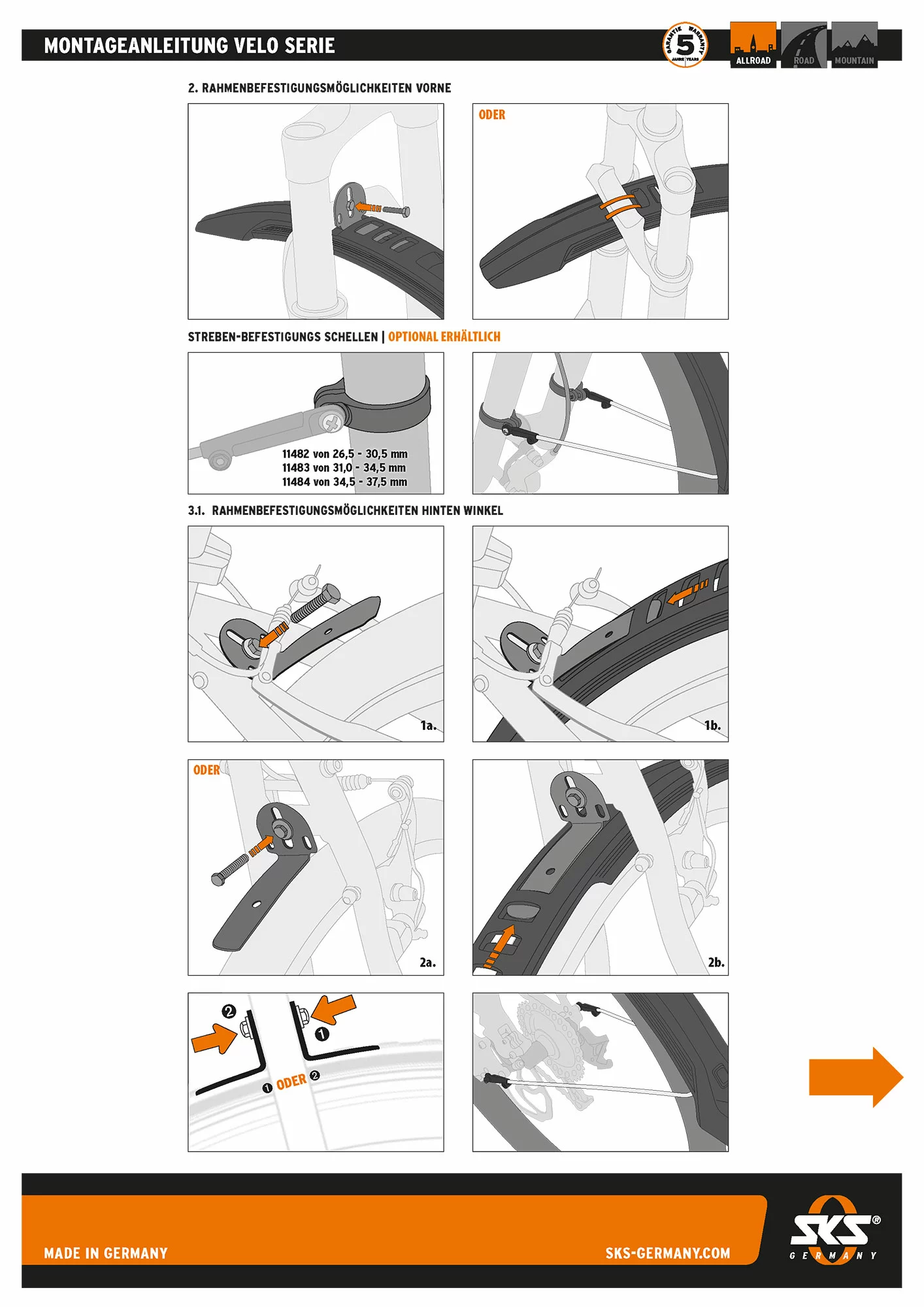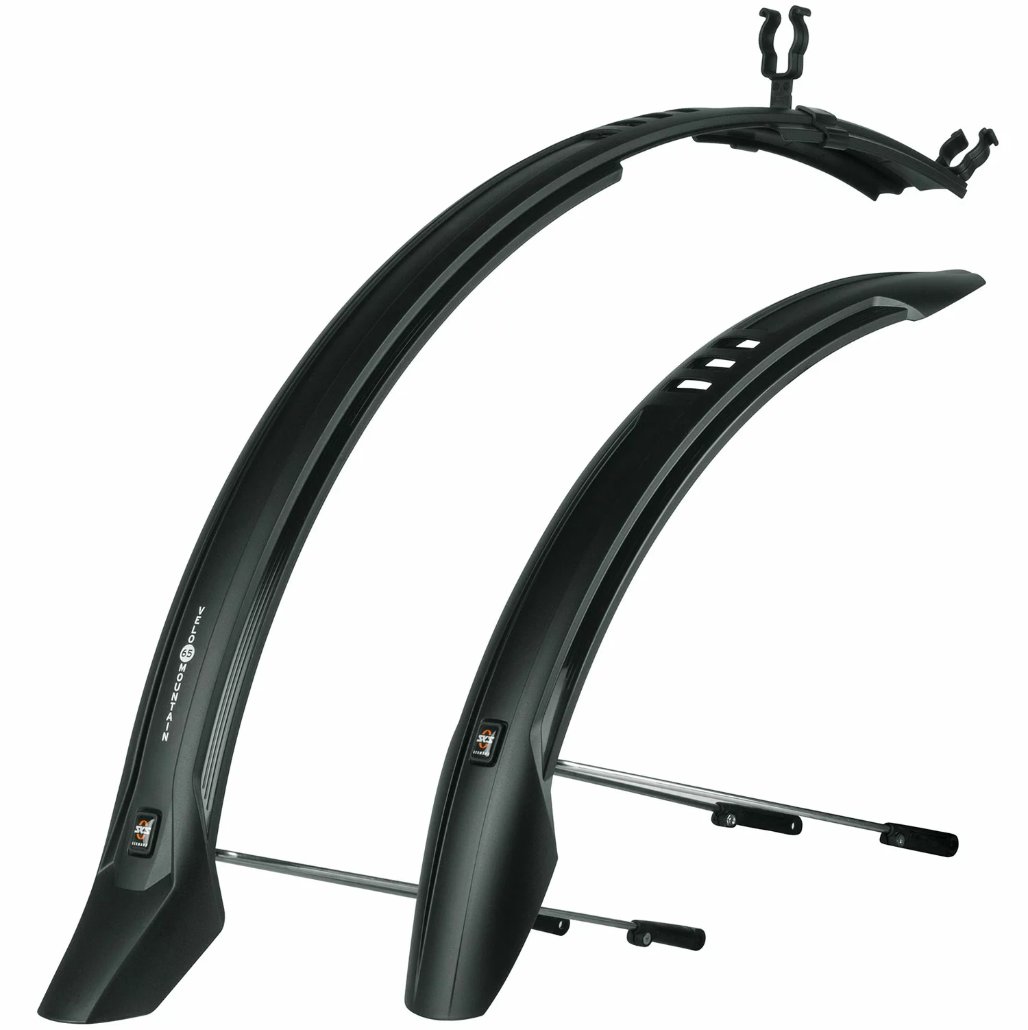 The black VELO 65 MOUNTAIN 29″ SET from SKS is the »big brother« of the VELO 42, and it’s an ideal retrofit kit for 29” mountain bikes. Its practical universal mount makes it easy to securely attach to any commonly marketed bike frame bar.