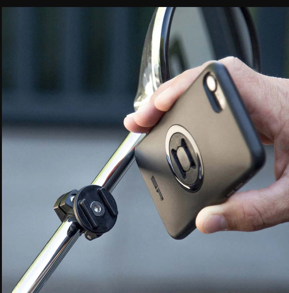Avec le Mirror Mount de SP Connect, tu obtiens un support flexible et intuitif pour ton smartphone, sur lequel l’étui SP Connect Phone Case (non inclus) est fixé en toute sécurité en une seconde.